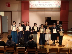 1柏浦 悠人基礎5ジュニアブルグミュラー/25の練習曲 第2番 アラベスク作曲者不詳(J.S.バッハ編)/ポロネーズ ト短調 BWV Anh.1192竹村 色葉基礎5ジュニアブレスラウアー 新版オルガン・ピアノより/夕べの祈りクープラン/ブーレー ニ短調3渡邊 愛士基礎5ジュニアラーニングトゥプレイ/サーフィンラーニングトゥプレイ/こもりうた4大野 真優応用2ジュニアブルグミュラー/25の練習曲 第21番 天使の声J.S.バッハ/アリア ハ長調 BWV Anh.5145菊地 心蘭応用2ジュニアギロック/フラメンコブルグミュラー/25の練習曲 第10番 やさしい花6北井 暁応用3ジュニアJ.S.バッハ/インヴェンション 第9番 へ短調7小林 桜慶応用4ジュニアクレメンティ/ソナチネ Op.36-1 第1楽章クレメンティ/ソナチネ Op.36-1 第3楽章8近藤 ひな応用5ジュニアショパン/ワルツ 変イ長調 Op.69-1 「告別」9村田 麻帆応用5ジュニアJ.S.バッハ/インヴェンション 第14番 変ロ長調ショパン/マズルカ ハ長調 Op.67-310笠間 悠梨乃応用6ジュニアショパン/ワルツ イ短調 遺作シャーマン兄弟(ヤマハ編)/小さな世界(連弾)11村田 美月応用6ジュニアJ.S.バッハ/インヴェンション 第13番 イ短調モーツァルト/ピアノ・ソナタ ハ長調 K.545 第1楽章12小林 桜慶小林 華穂フリー3分ジュニア兒玉 苑香/めぐりくる秋に(連弾)