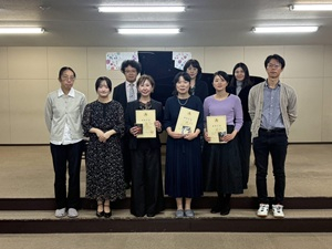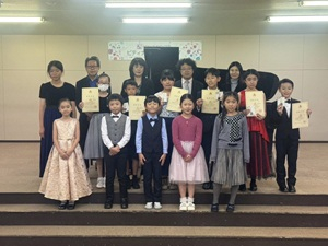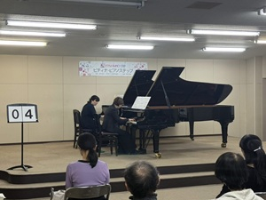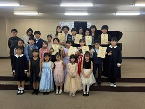 1山口 美織基礎4ジュニアブルグミュラー/25の練習曲 第5番 無邪気バイエル/第78番2倉橋 圭基礎5ジュニアブルグミュラー/25の練習曲 第20番 タランテラ3小林 菜緒子応用1ジュニアブルグミュラー/25の練習曲 第1番 すなおな心C.ペッツォルト(J.S.バッハ編)/メヌエット ト短調 BWV Anh.1154池上 奈那応用1ジュニアブルグミュラー/25の練習曲 第14番 スティリアンヌヘンデル/ブレ5荻田 紗奈応用4ジュニアディアベリ/ソナチネ Op.151-1 第1楽章ディアベリ/ソナチネ Op.151-1 第3楽章6関口 友都応用6ジュニアJ.S.バッハ/インヴェンション 第14番 変ロ長調ショパン/ワルツ 変ニ長調 Op.64-1 「小犬」7大里 香遥応用7ジュニアJ.S.バッハ/インヴェンション 第8番 ヘ長調モーツァルト/ピアノ・ソナタ ハ長調 K.545 第1楽章8野中 大輝応用7ジュニアJ.S.バッハ/インヴェンション 第8番 ヘ長調9松井 彩香里発展5ジュニアショパン/幻想即興曲10野中 大輝フリー12分ジュニアハイドン/ピアノ協奏曲 第11番 ニ長調 Hob.XVIII:11 第1楽章(2台ピアノ)