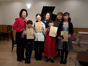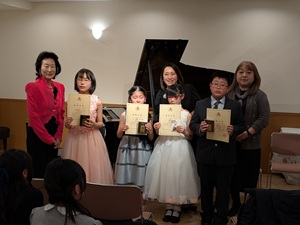 1佐藤 靖祥導入2ジュニアアメリカ民謡 新版オルガン・ピアノより/ドナルドおじさんアメリカ民謡 新版オルガン・ピアノより/ちゃいろのこびん2小鈴 心結導入3ジュニアドイツ民謡 新版オルガン・ピアノより/かわいいおんがくかドイツ民謡(Minori Kido編曲)/もみの木3竹下 知穂基礎5ジュニアバイエル/第106番ブルグミュラー/25の練習曲 第7番 きれいな流れ4松田 湊フリー3分ジュニアJ.S.バッハ/インヴェンション 第8番 ヘ長調5楠本 美夏発展4ジュニアJ.S.バッハ/シンフォニア 第6番 ホ長調モーツァルト/ピアノ・ソナタ ハ長調 K.309 第1楽章6高向 康太朗フリー10分ジュニアベートーヴェン/ピアノ・ソナタ 第17番 ニ短調 Op.31-2 「テンペスト」 第1楽章リスト/パガニーニ大練習曲集 第5曲 狩り7三浦 芽衣フリー15分ジュニアベートーヴェン/ピアノ・ソナタ 第1番 ヘ短調 Op.2-1 第1楽章スカルラッティ/ソナタ ト長調 K.146/L.349ショパン/ワルツ 変ニ長調 Op.70-3メンデルスゾーン/ロンド・カプリチオーソ8荒谷 柚希菜フリー15分ジュニアベートーヴェン/ピアノ・ソナタ 第11番 変ロ長調 Op.22 第1楽章スカルラッティ/ソナタ ト長調 K.146/L.349プロコフィエフ/「ロメオとジュリエット」より マーキュシオ Op.75-8