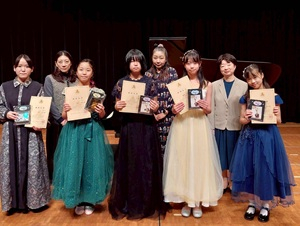 1尾上 実優フリー3分ジュニアショパン/ワルツ 変ニ長調 Op.64-1 「小犬」2西川 望フリー5分ジュニアベートーヴェン/エリーゼのために3市川 莉愛菜フリー15分ジュニアJ.S.バッハ/平均律 第1巻 第13番 嬰ヘ長調 フーガシューベルト/即興曲 Op.90-4千原 英喜/34の音の画集「星月夜」より 星空に歌おう4服部 優奈基礎5グランミューズR.シューマン/小曲 Op.68-5カバレフスキー/「子供の夢」より 夢5中山 優子中山 莉子応用1グランミューズカーマイケル(轟 千尋編曲)/ハート・アンド・ソウル(連弾)湯山 昭/ブルゴーニュのこもりうた(連弾)6中野 みゆき中野 夢萌フリー3分グランミューズ松尾 賢志郎/アサガオのピアノ(連弾)7中山 優子フリー3分グランミューズリヒナー/ソナチネ Op.49-1 第3楽章8中山 莉子フリー5分グランミューズラヴェル/ソナチネ 第3楽章9中野 夢萌フリー7分グランミューズショパン/プレリュード 変ニ長調 Op.28-15 「雨だれ」10服部 優奈フリー7分グランミューズブラームス/4つの小品 Op.119-4 ラプソディ